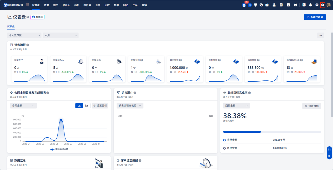 ①企业平台信息:显示企业当前系统的用户总数。企业可以不限人数不限时长永久免费使用当前悟空CRM系统。