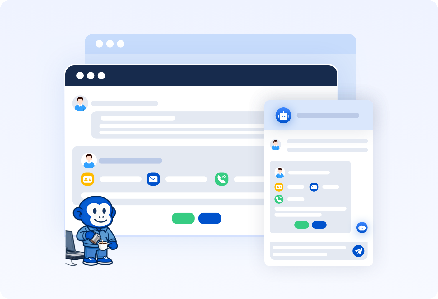 Full-process service recording: auto-capture all channel content + standardized work orders (problem/ duration/result).