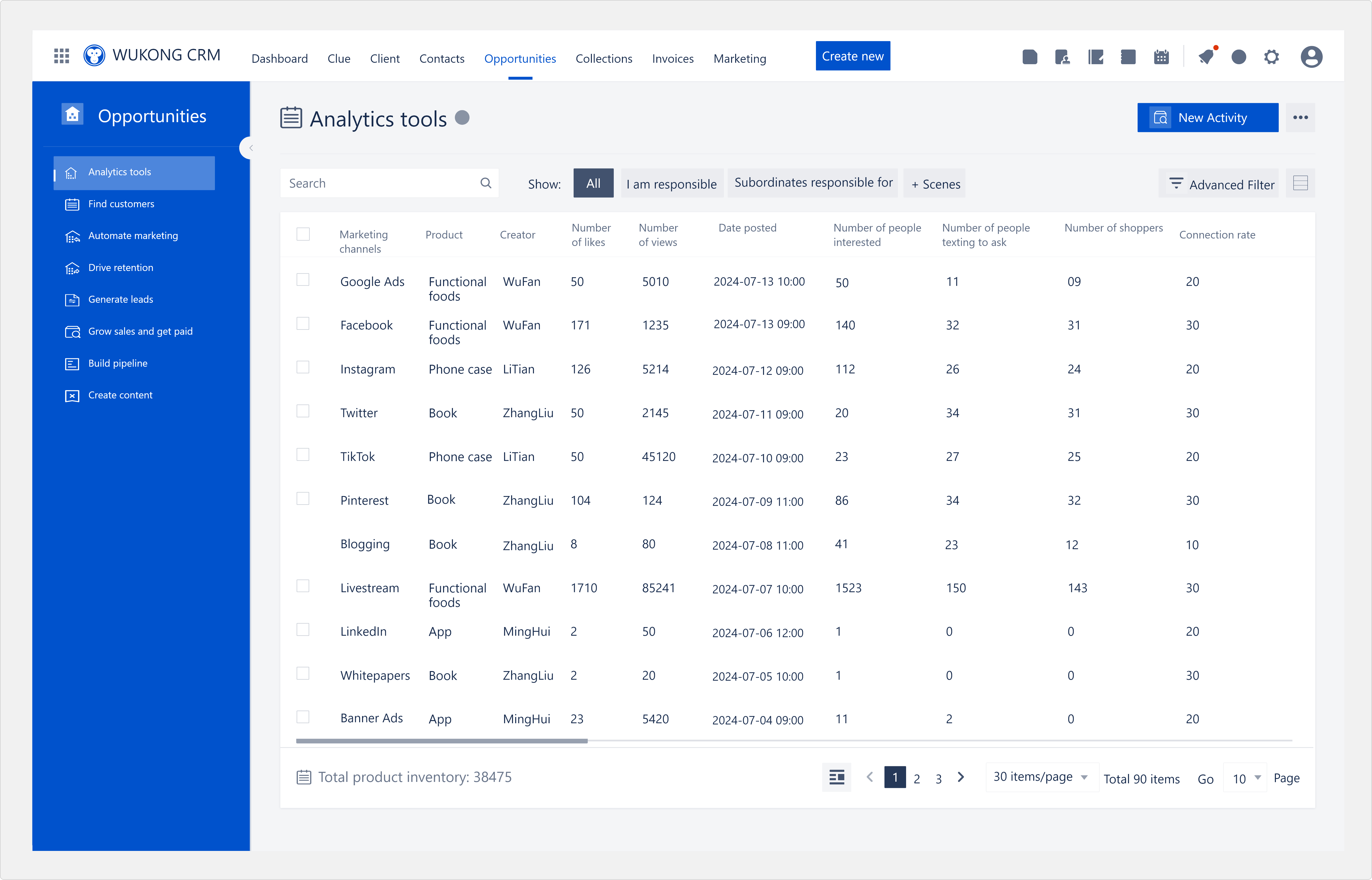 Data from the CRM drives all your Wukong CRM marketing, sales, and customer service tools. With a unified view of the customer and advanced reporting, you’ll enhance relationships at every stage.
